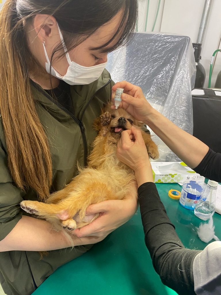 メニーちゃんも 体重測定、目薬、耳掃除、、、