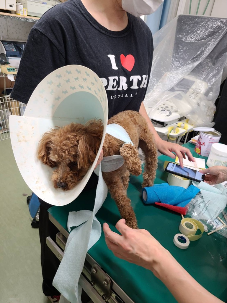 下のプードルのテト君は 昨日骨折をしてしまいましたので 様子を見ています、
