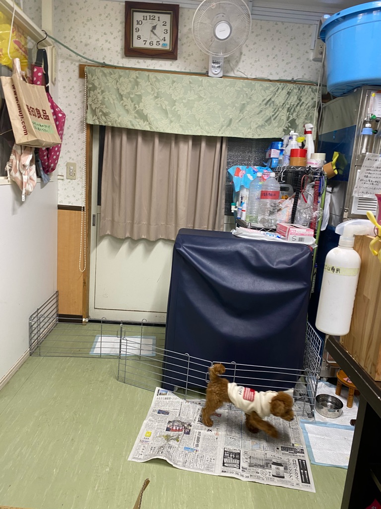 走り回るチョコ、シンザツの手術待ち。