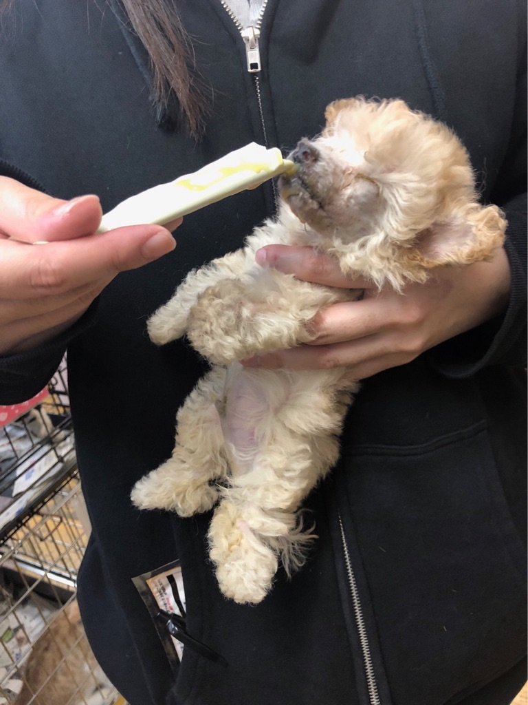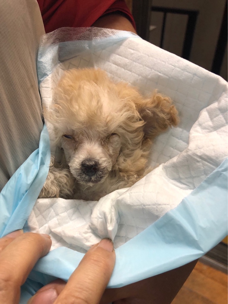 下はレスキュー時のボクちゃん、虚弱児のボクちゃんは 衰弱して死にそうな子犬でした💦