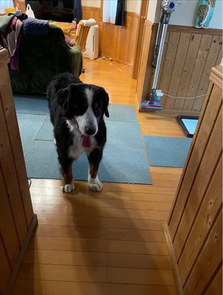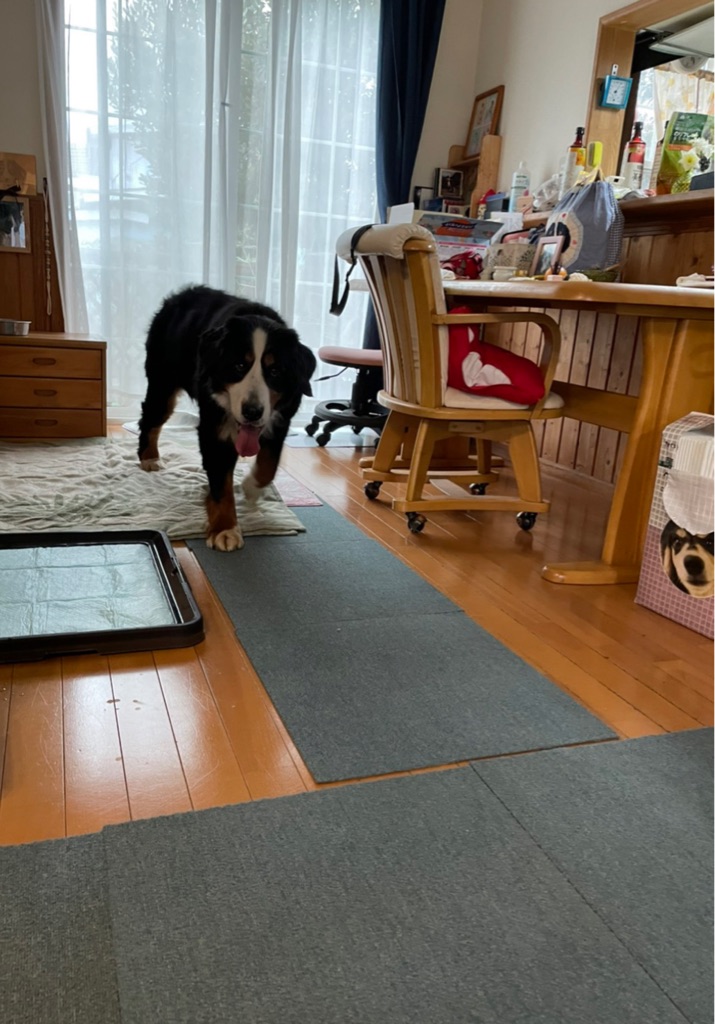 繁殖犬として ケージの中しか知らなかったバーニーズが 生まれて初めて家庭に入りました