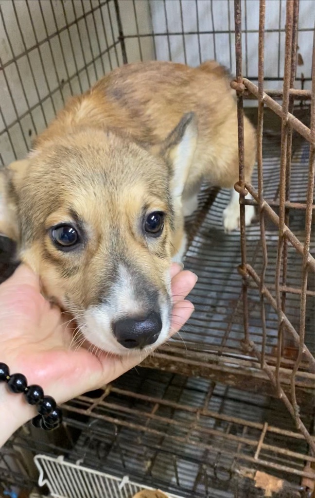 悲しい顔をしたコーギーの子犬、うちのクリニックで治せるならば手術をして上げたいと思いました、