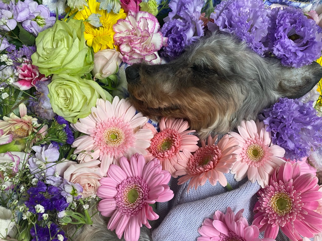 皆様から頂きました沢山のお花に囲まれて