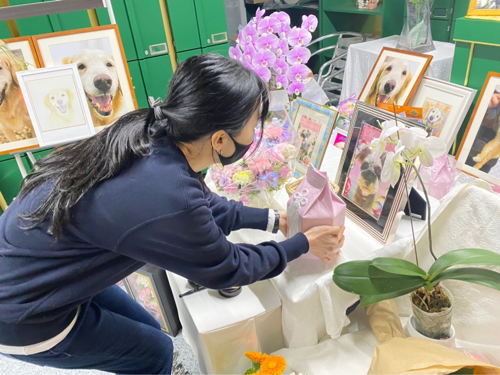 スタッフさん達は形見に メリーさんの毛を頂きました。