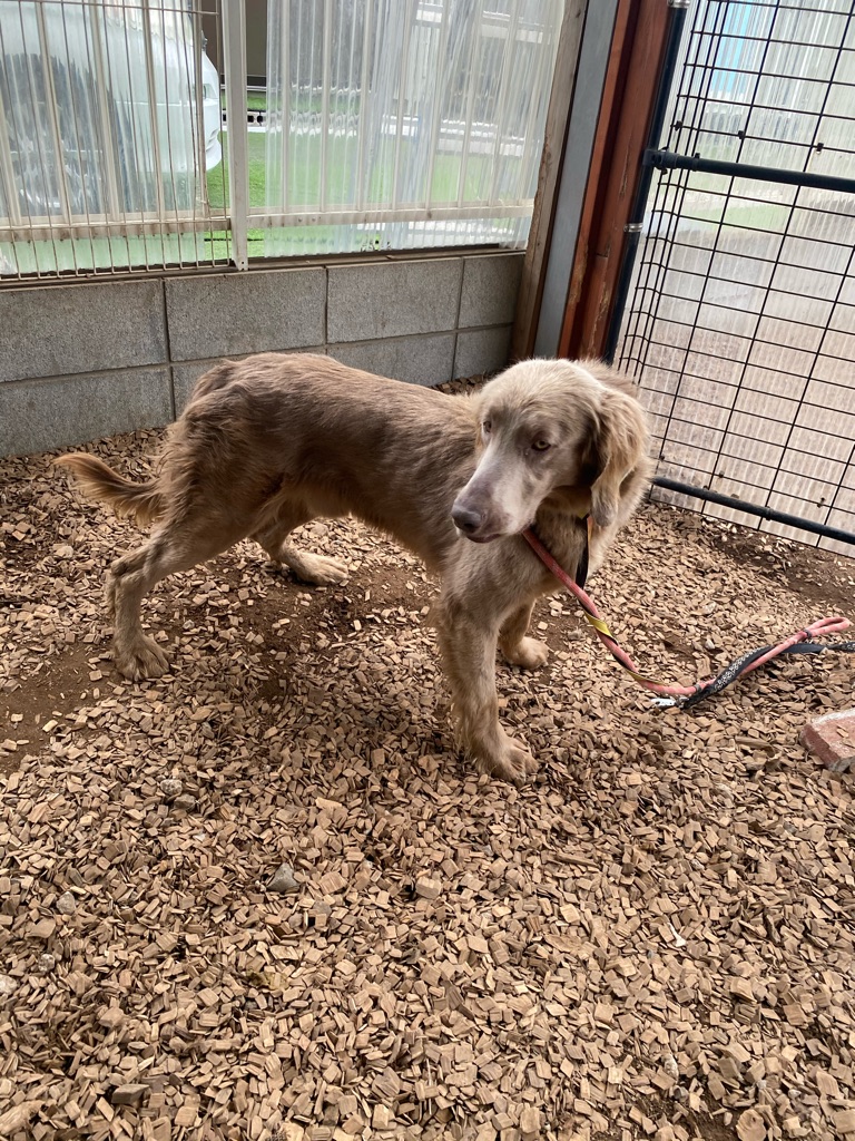 ワイマラナー のシオン君は 頑なにケージに入る事を拒みました、