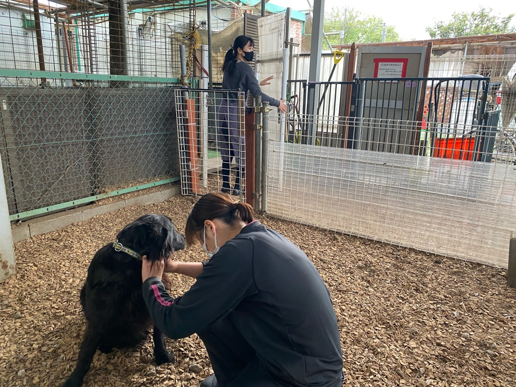 広いランに出られた犬達は最初は驚き戸惑います、