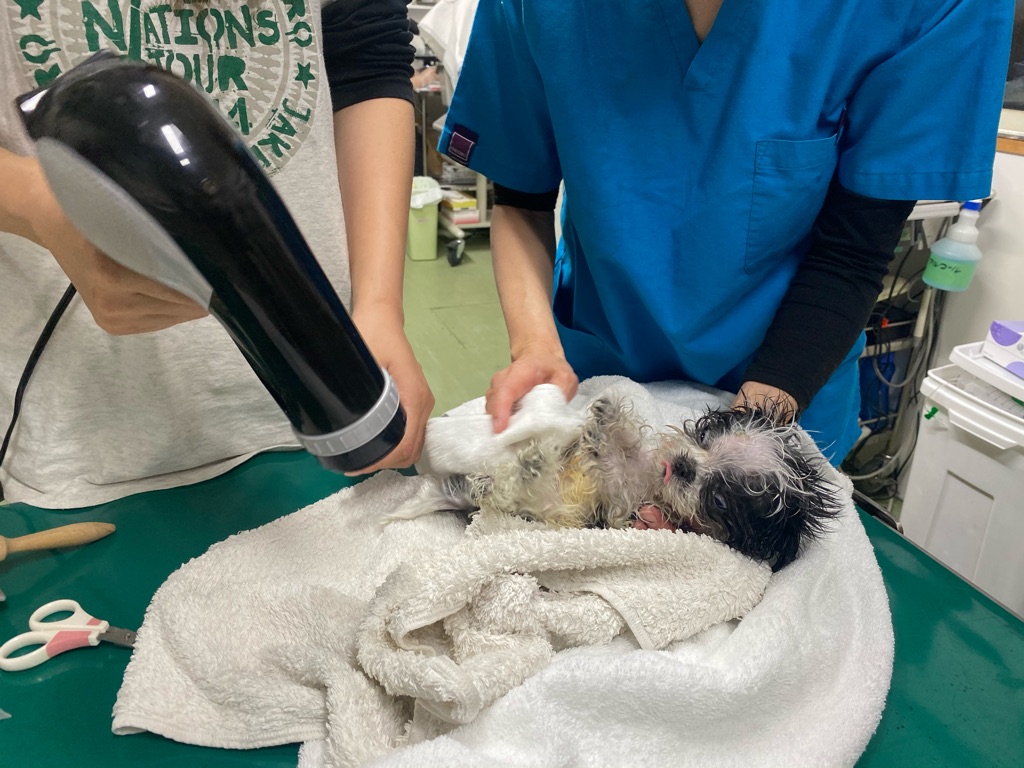 そして又 水頭症の赤ちゃんかやってきました。生後2ヶ月くらいのシーズーの赤ちゃんです。
