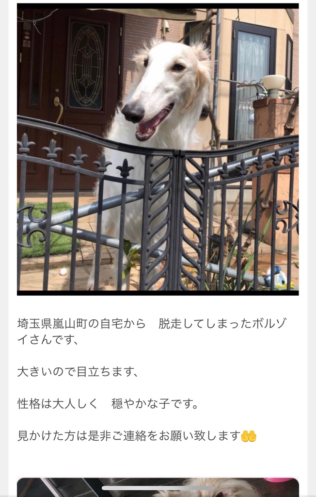 迷子のボルゾイについて 情報が来ました