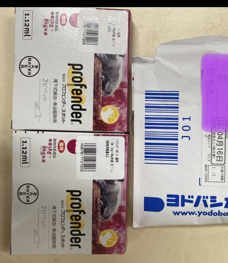 早速猫ちゃんの駆虫薬を有り難うございました