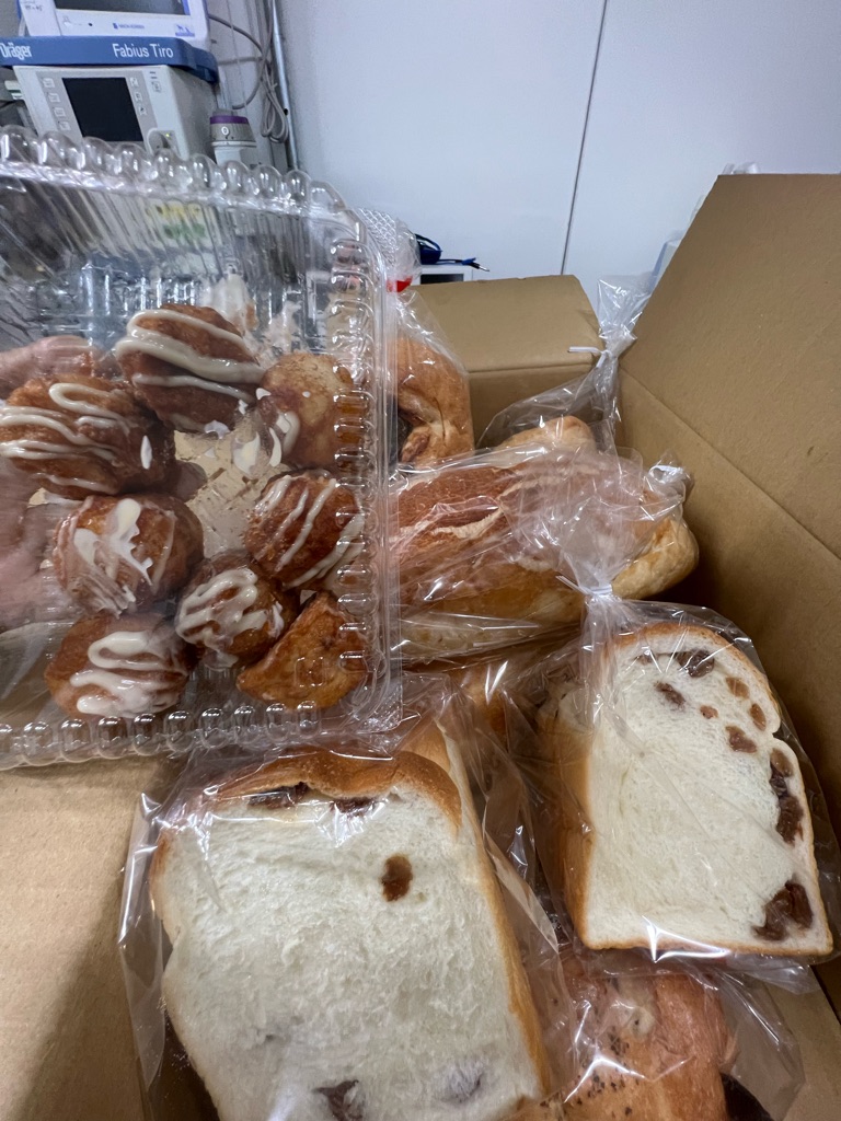 下はビジュちゃんのママさんからの差し入れです パンケーキ、ホットドッグ、巻き寿司、