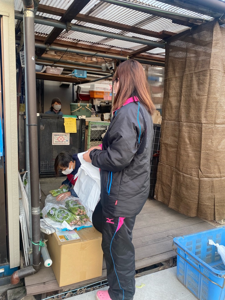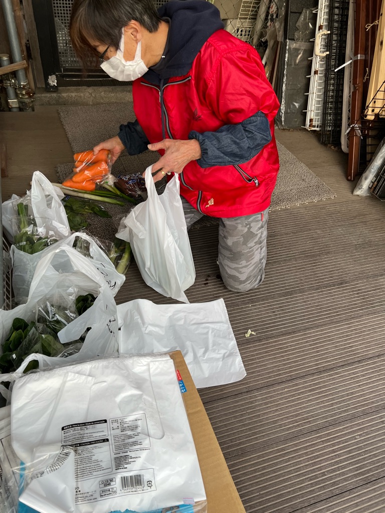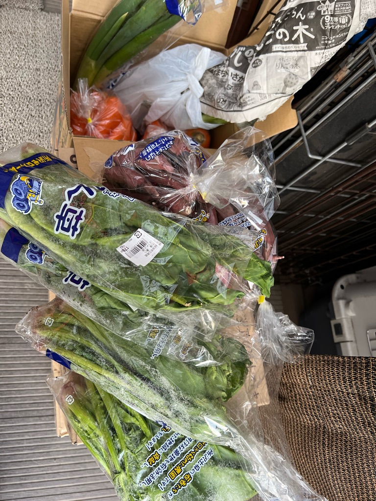 下は所沢の支援者様が野菜を持ってきて下さいました、ほうれん草、さつまいも、人参、長ネギ、みんなで分けさせて頂きました、