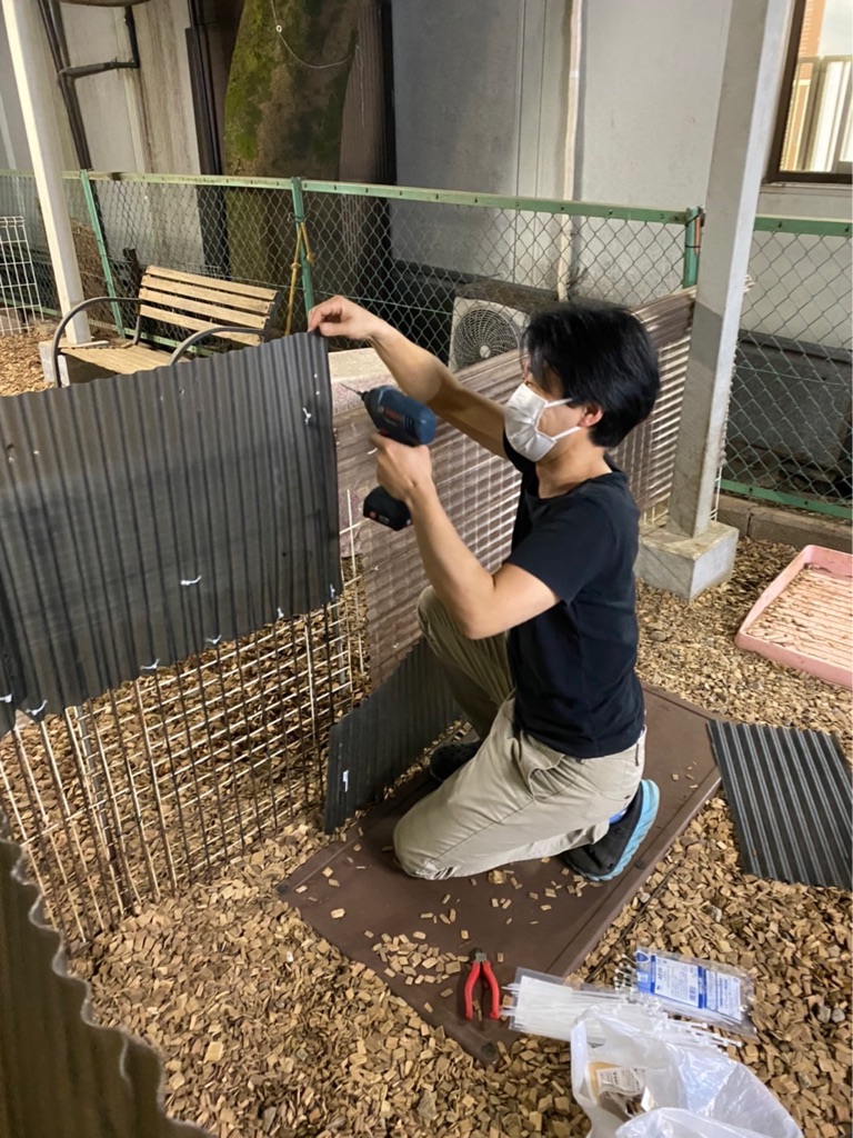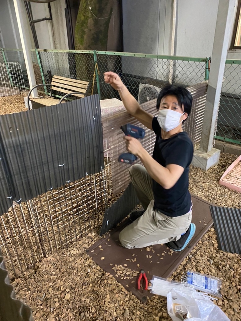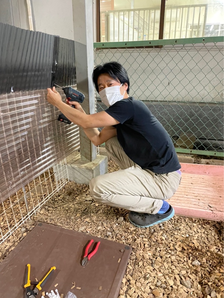犬がよじのぼるので 波板を足してくれています。