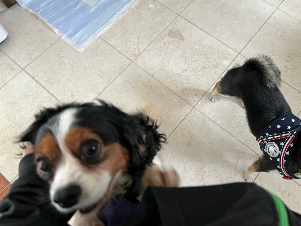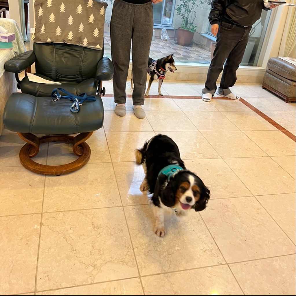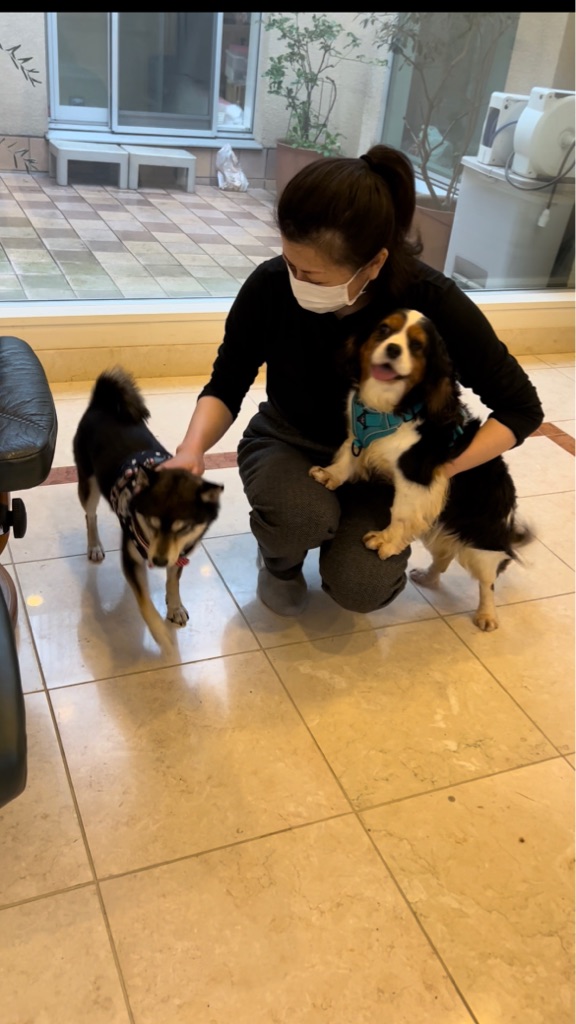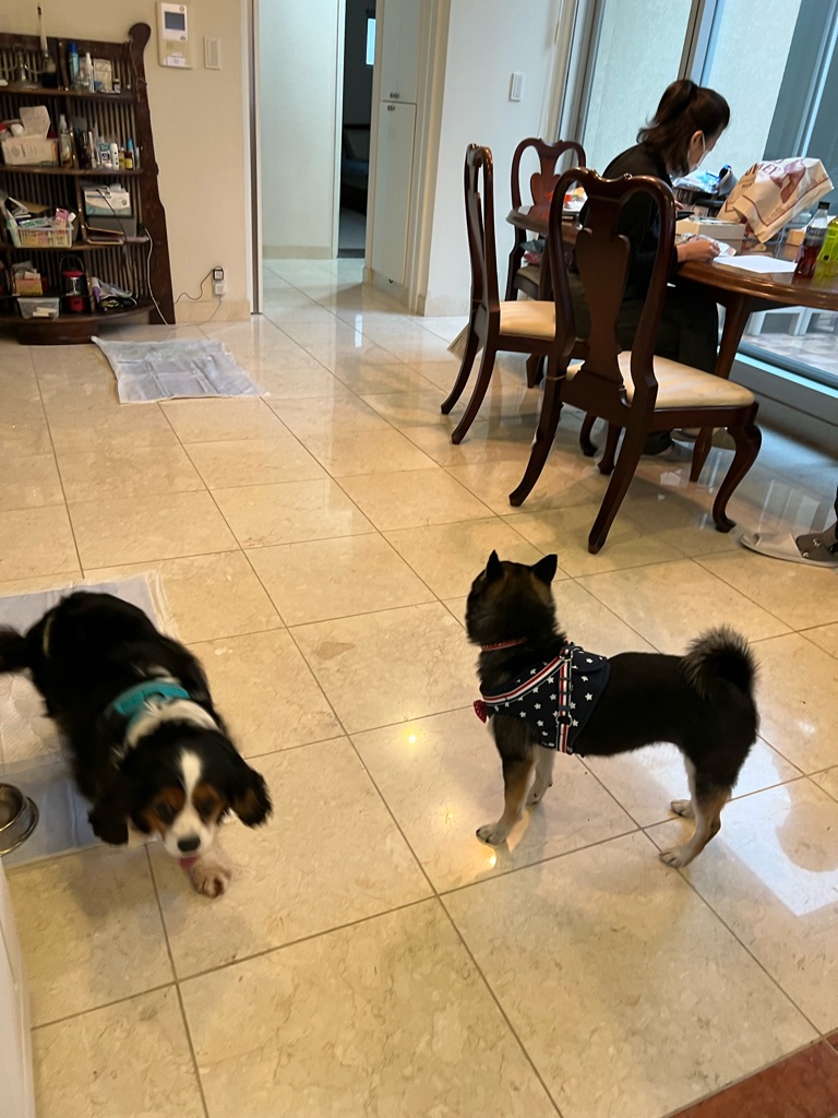 キャバリアと柴ちゃん、 珍しい組み合わせですがお互いに あまり興味が無くて😅