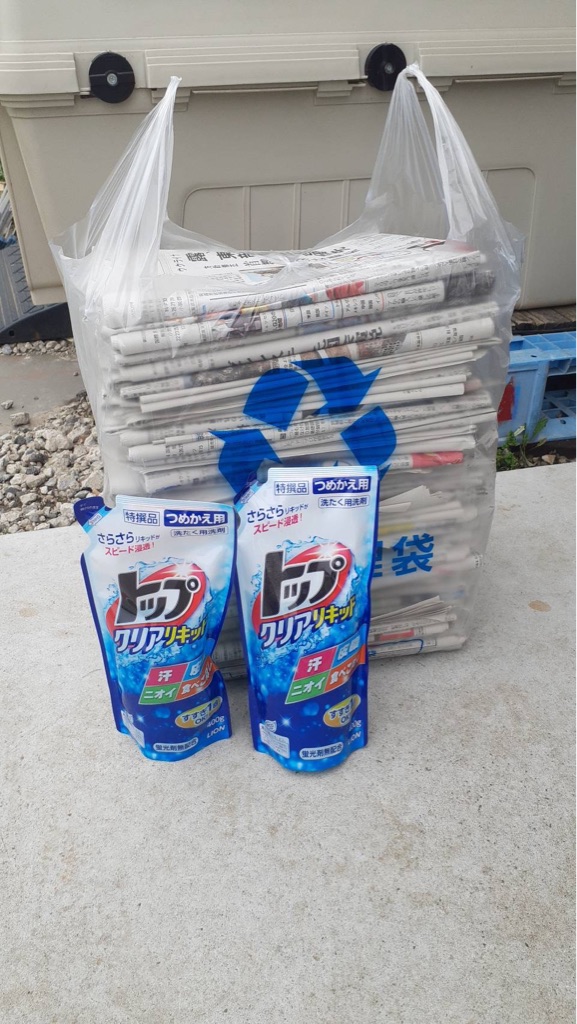 新聞紙、洗剤のご支援をいただきました、ありがとうございます😊🙏助かります💓
