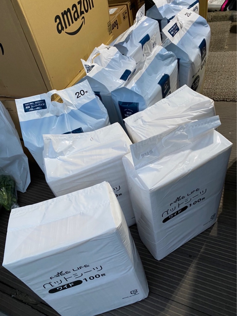 今日オージー達に 沢山のアキレスとペットシーツが届きました、
