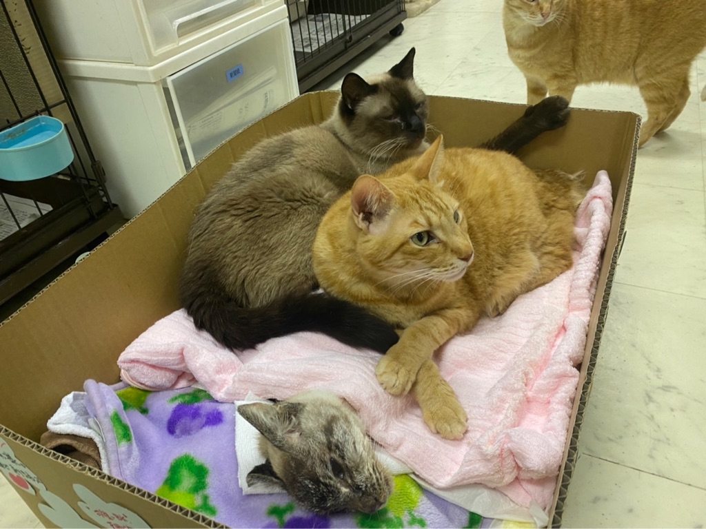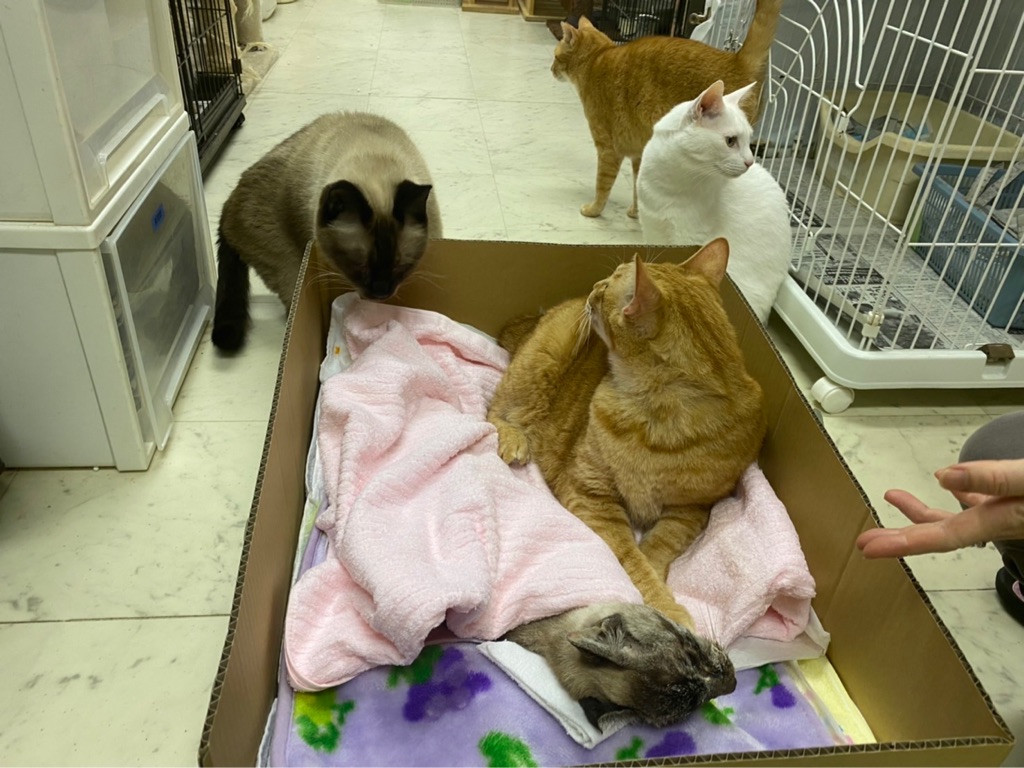 元は皆んな野良猫さんで 飼い主さんが避妊去勢をして 会社で飼っていました、