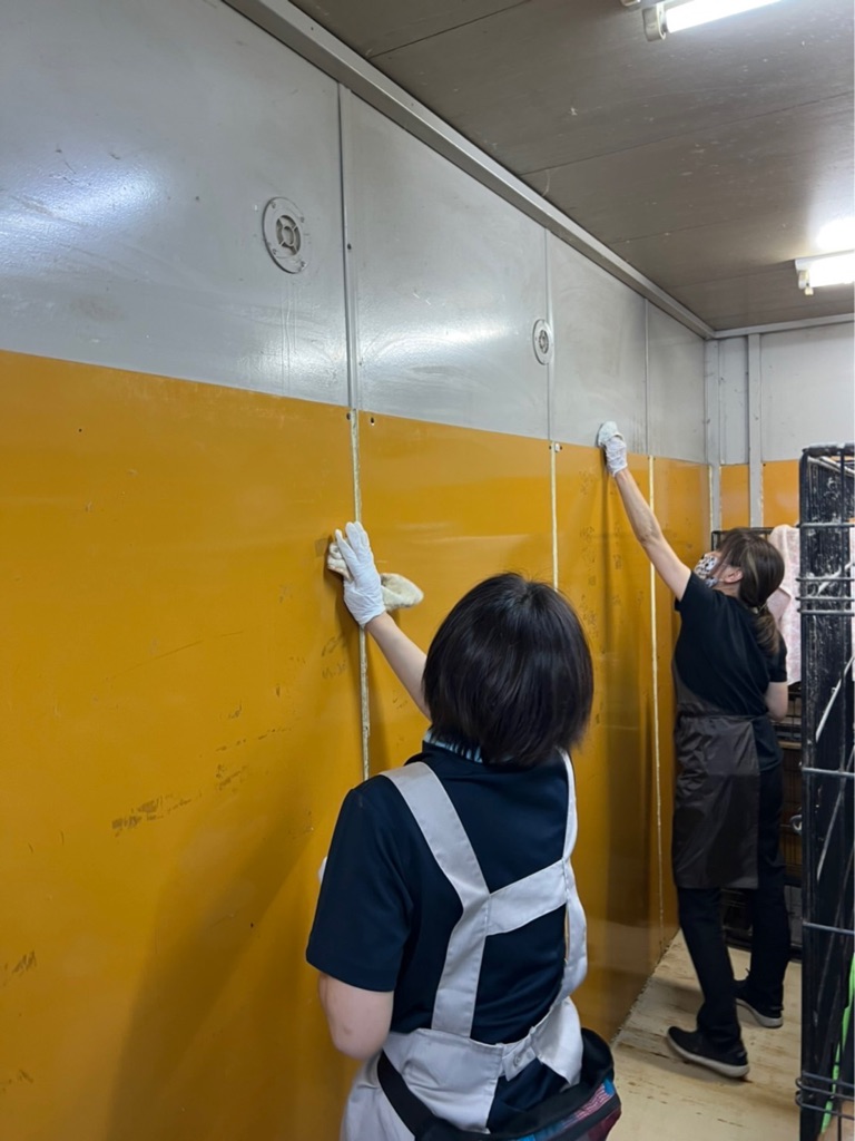 柴犬ルームのお掃除、ケージをどけて壁まで綺麗にしてくださいました。