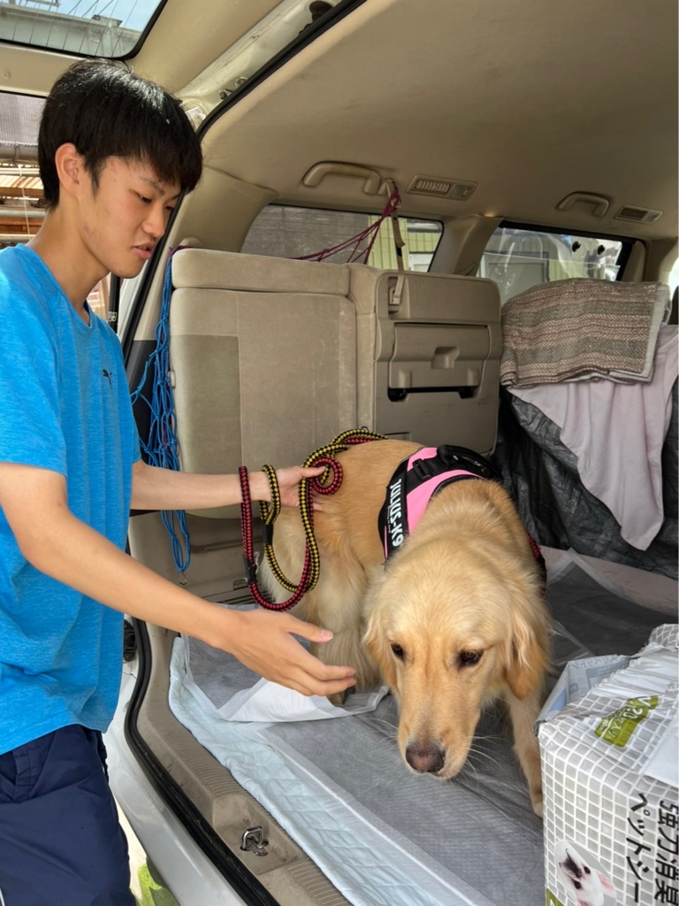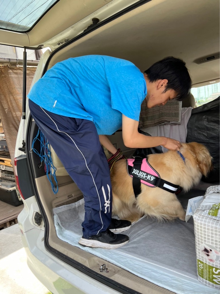 スタッフさんと 病院に向かうウィッシュ、