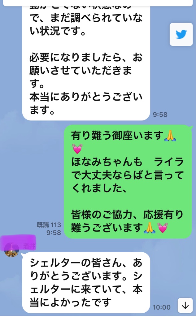 シェルターのスタッフさんから 連絡が有り