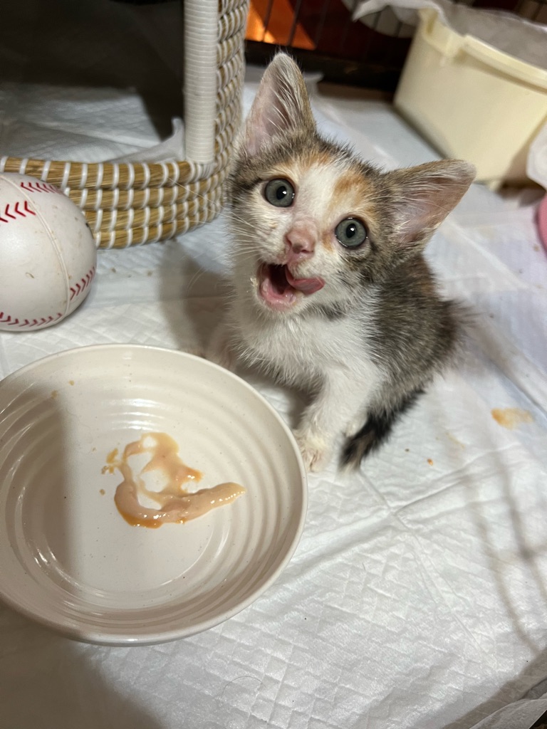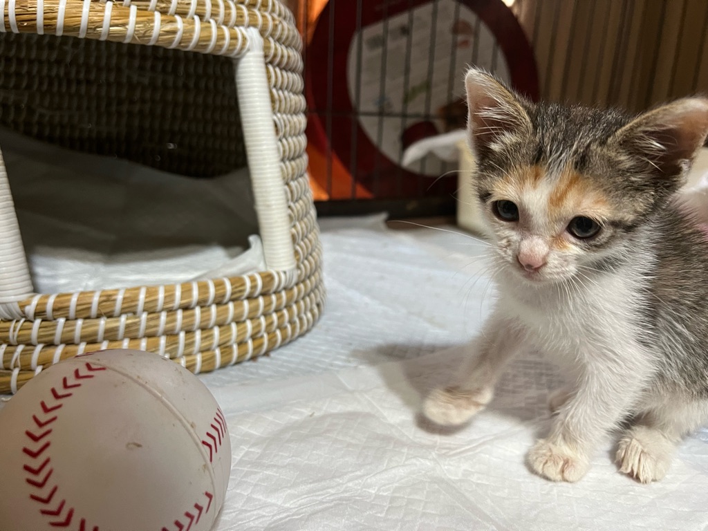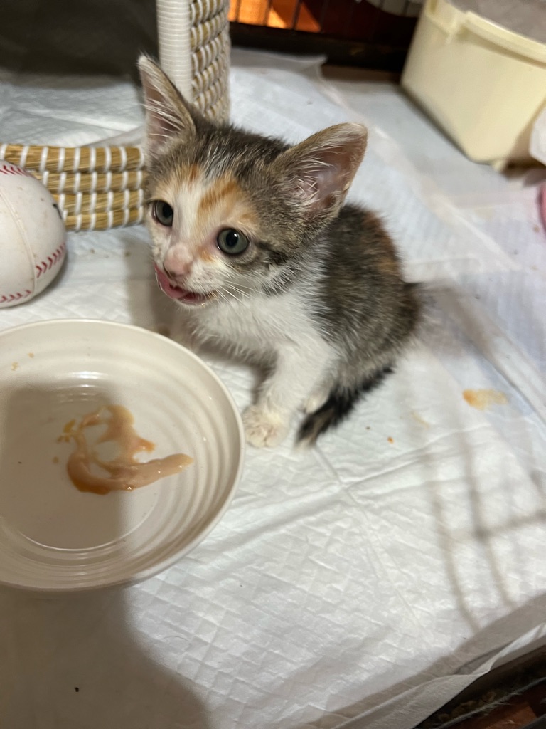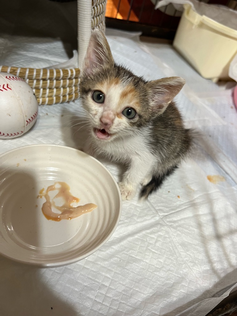 深夜の道路にうずくまっていたみかん🍊ちゃんは目がメヤニで固まり動けなかったのです、