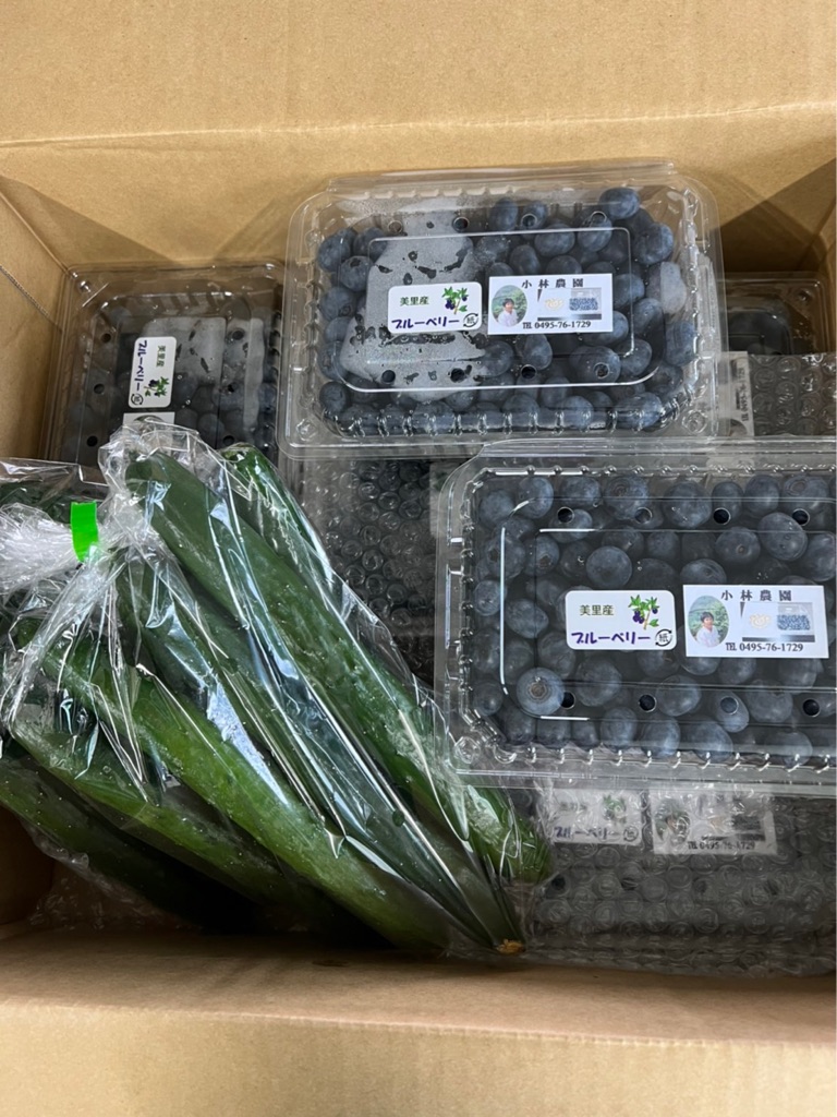 今日また まゆみさんから沢山のブルーベリーときゅうりが届きました、