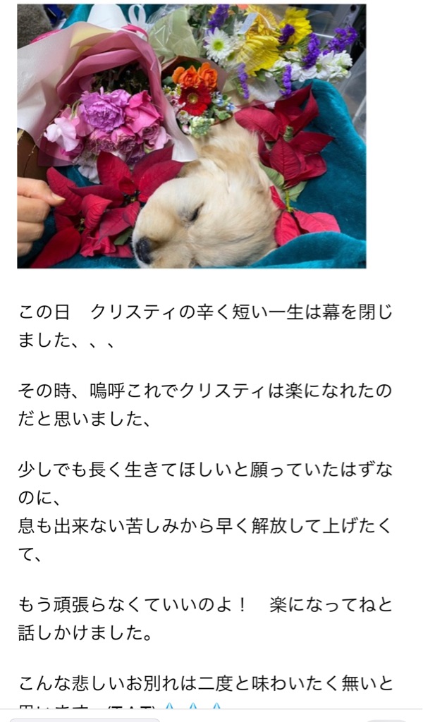 可愛かったクリスティ、天使になって私達を見守ってくれていると思います、