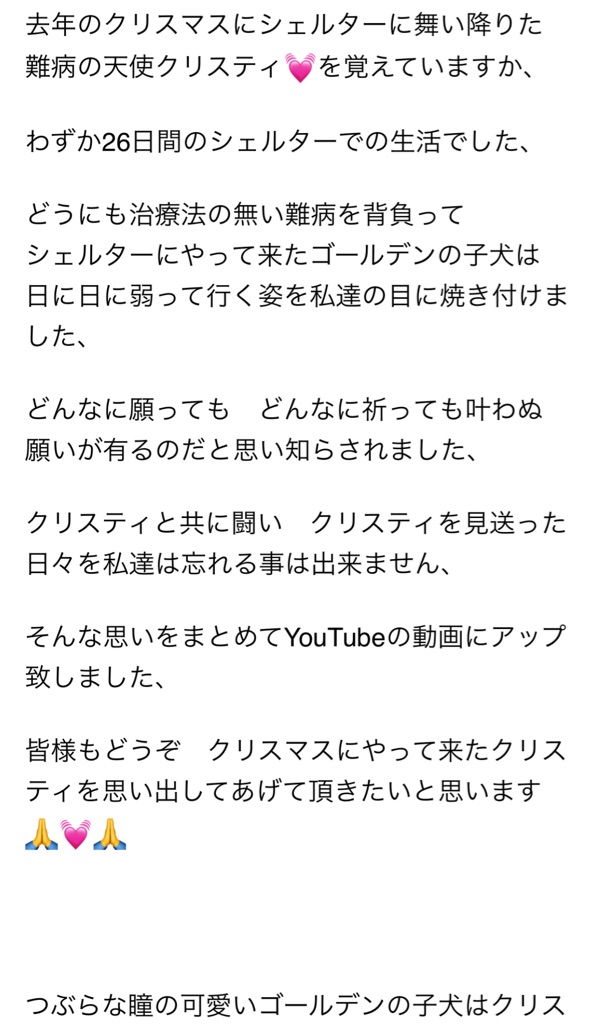 どうぞ今一度 YouTubeのクリスティの物語を是非ご覧になって頂きたいと思います、