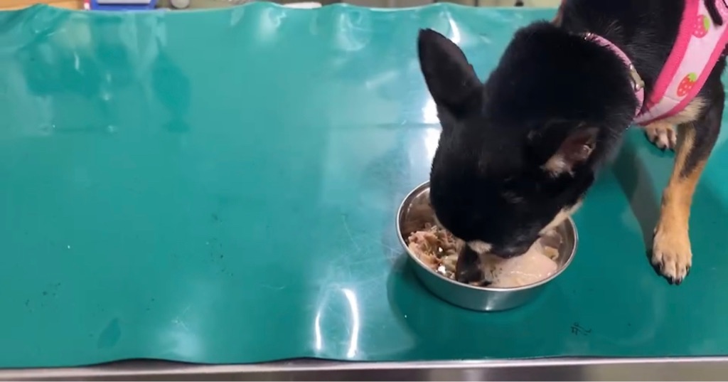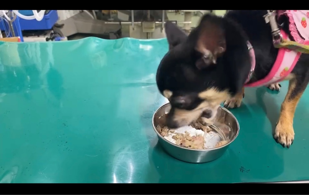 朝から食べていないとの事で ご飯を上げたら凄い勢いで食べました。