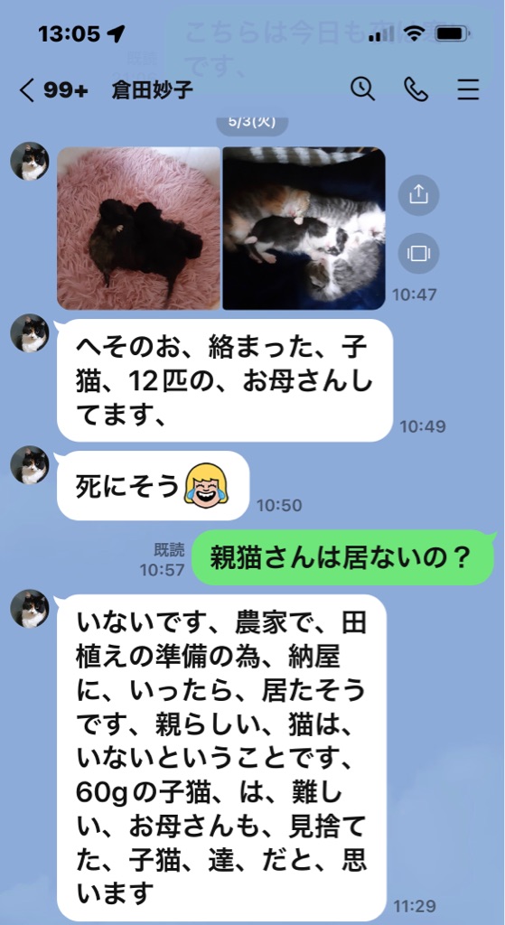 倉田さんとはもう 25年くらい前からのボランティア仲間です、川口に住んでいた時から河川敷や土手に捨てられて居る子犬、子猫を保護して