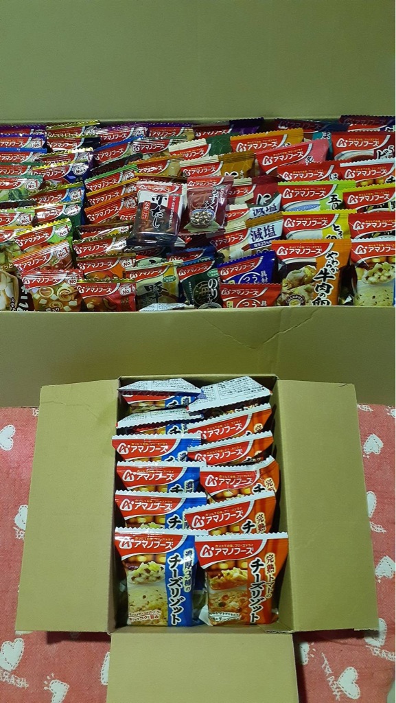 下のインスタント味噌汁、リゾット、深夜お腹が空くので大変助かります。