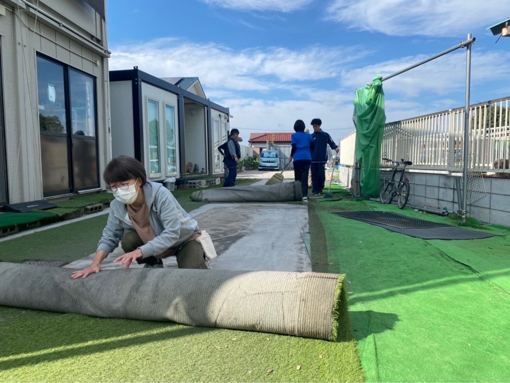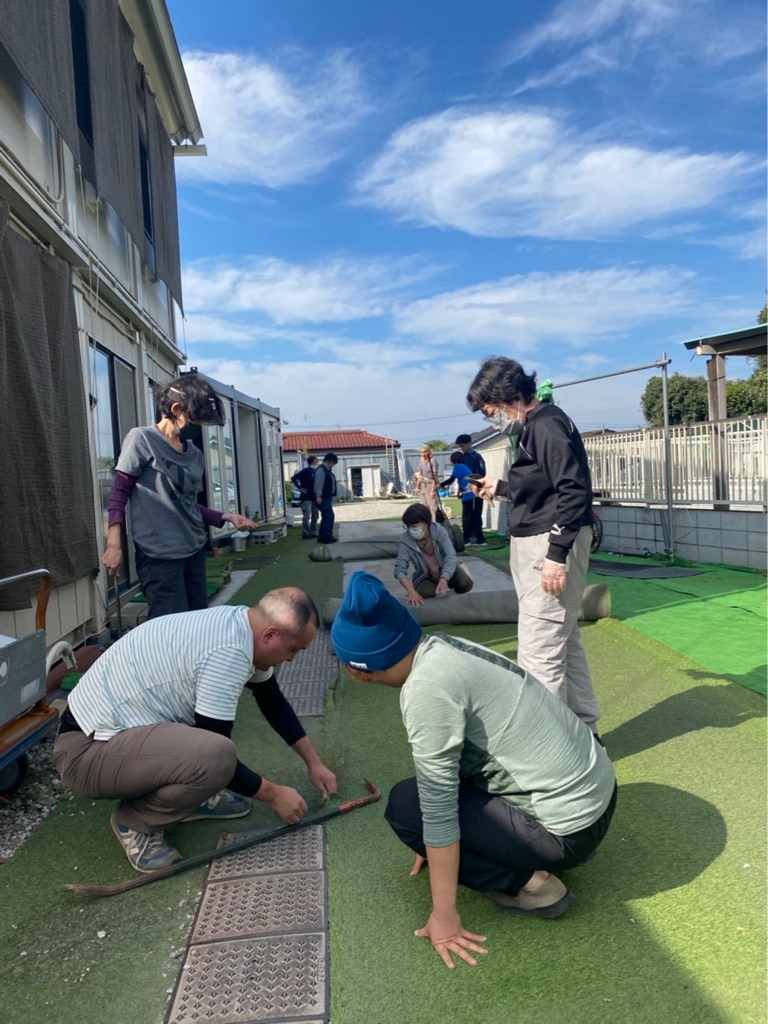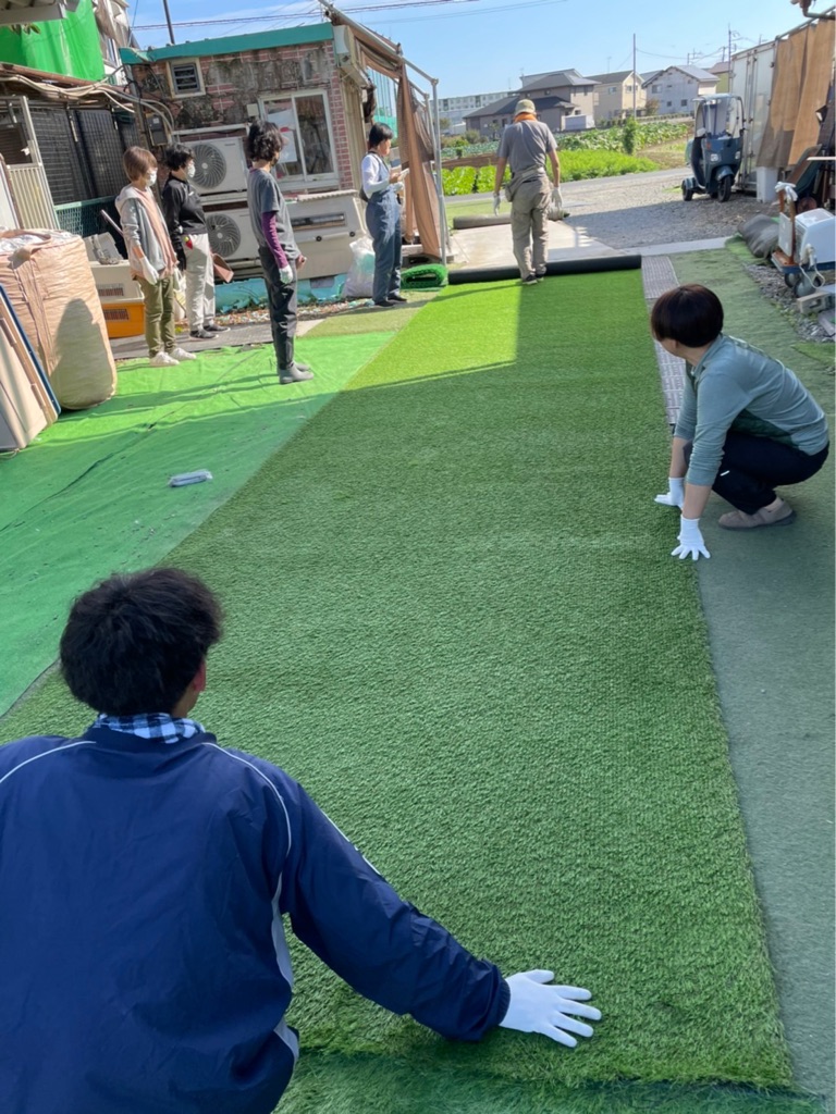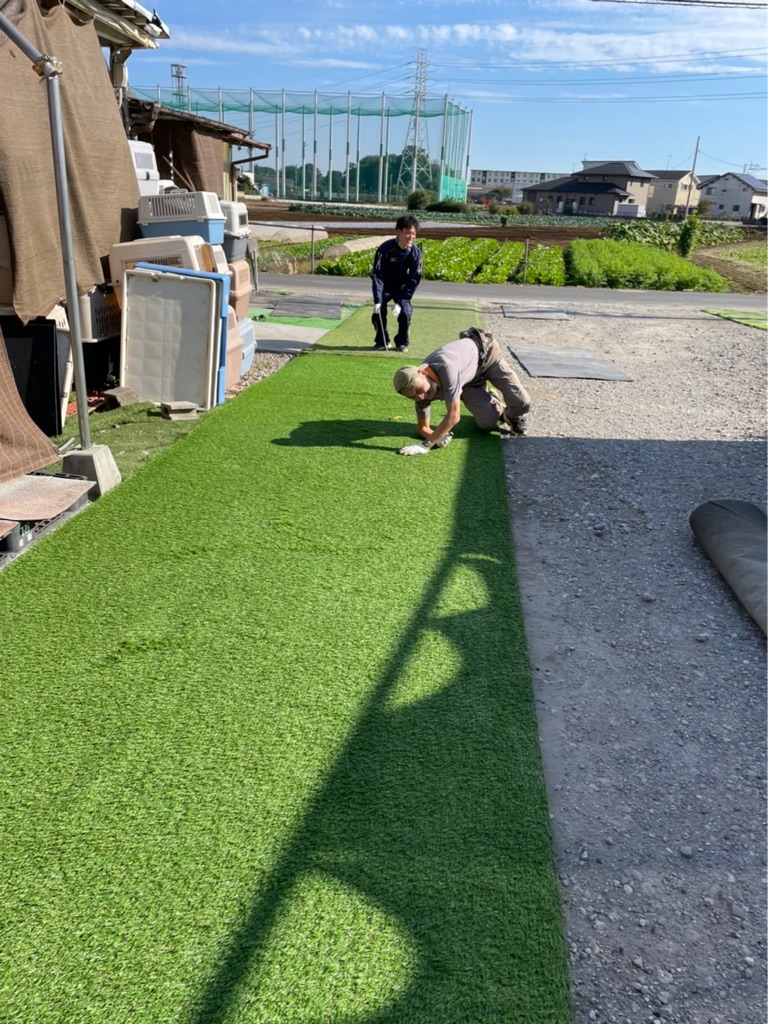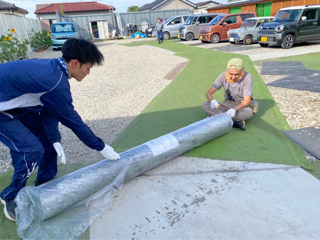 駐車場の人工芝が捩れたり破けてきたので