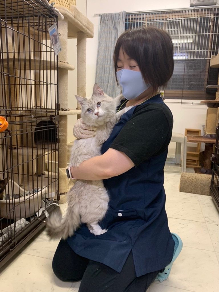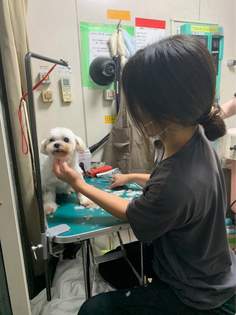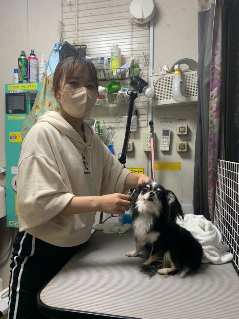 昨夜も夜中まで 譲渡会参加の犬達をトリミングしてくれたお姉さんです、