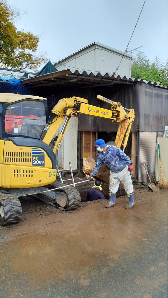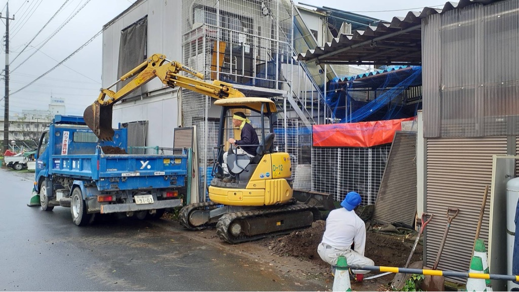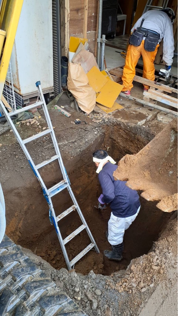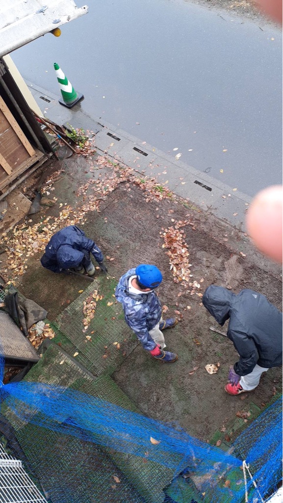 今日は生憎の雨ですが 工事の方々が来て下さっています、