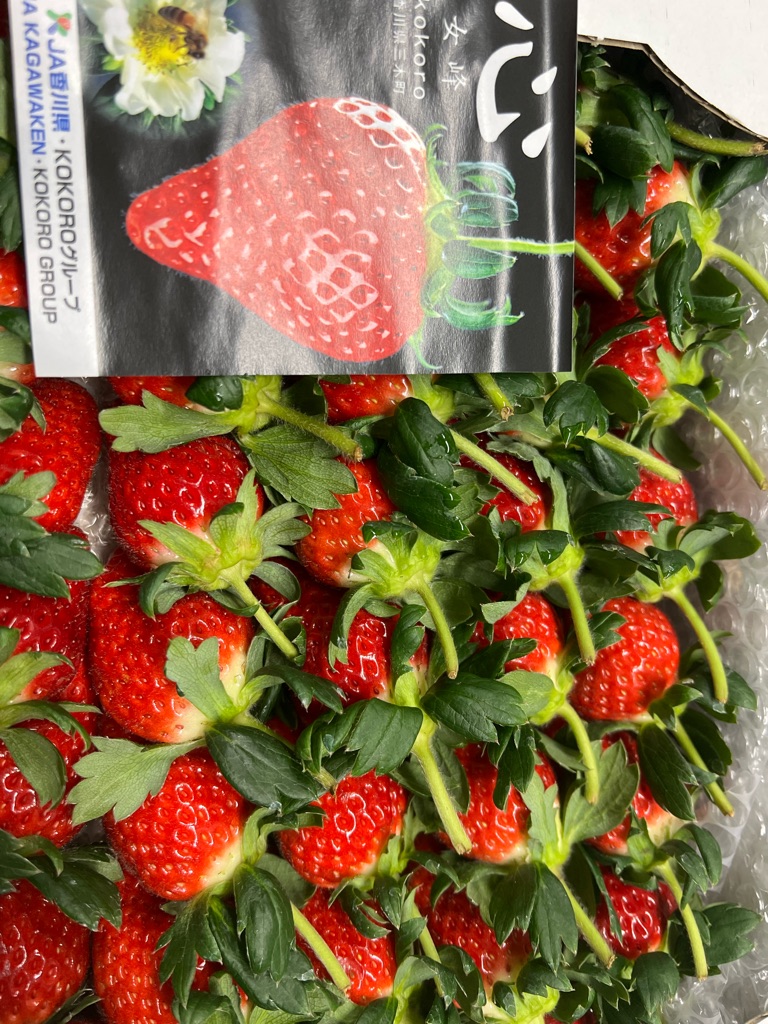 葉っぱの付いたイチゴ めちゃ美味しかったです、ビタミン不足なので助かりました🙏💓🙏