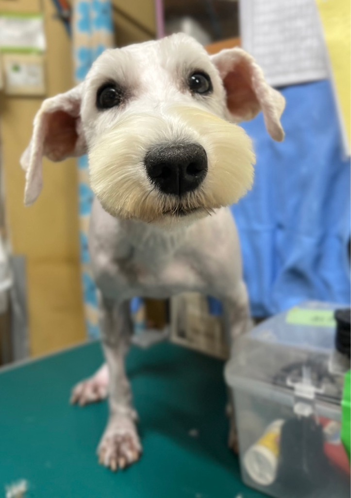 顔だけ残して身体はツルツルにバリカンがかけられていたシュナちゃんのビフォーです。
