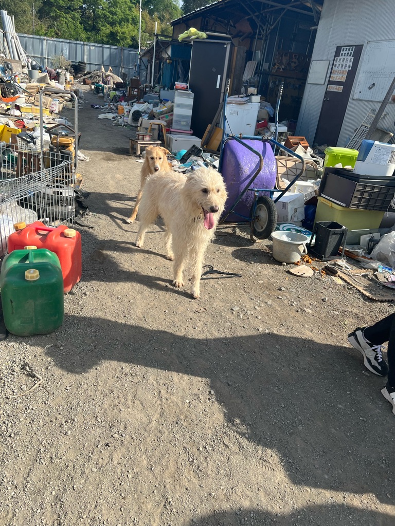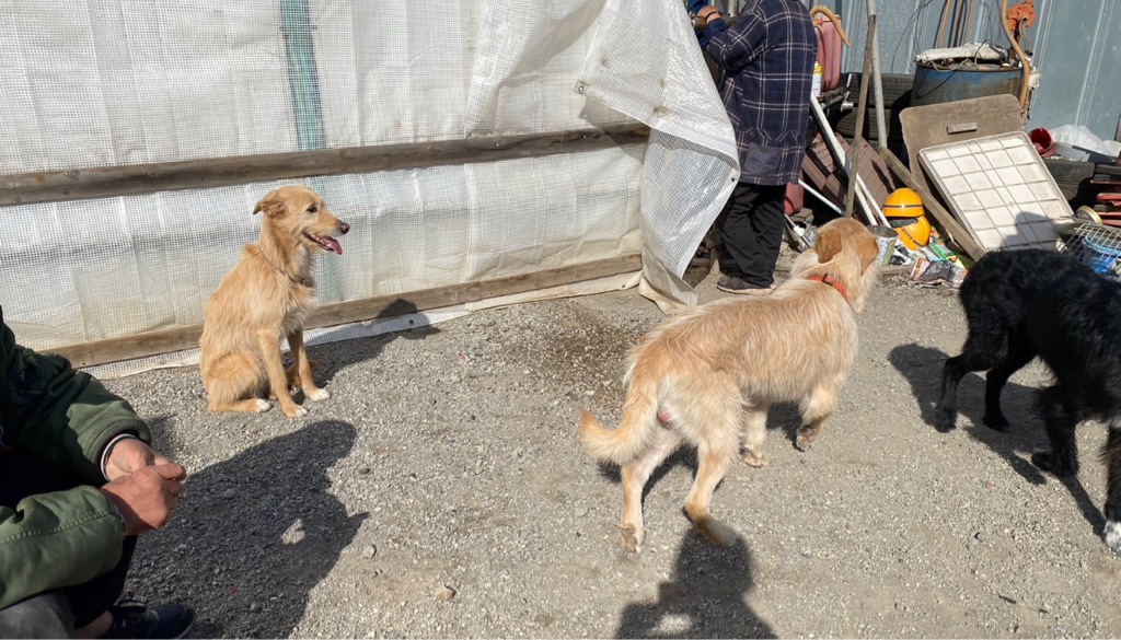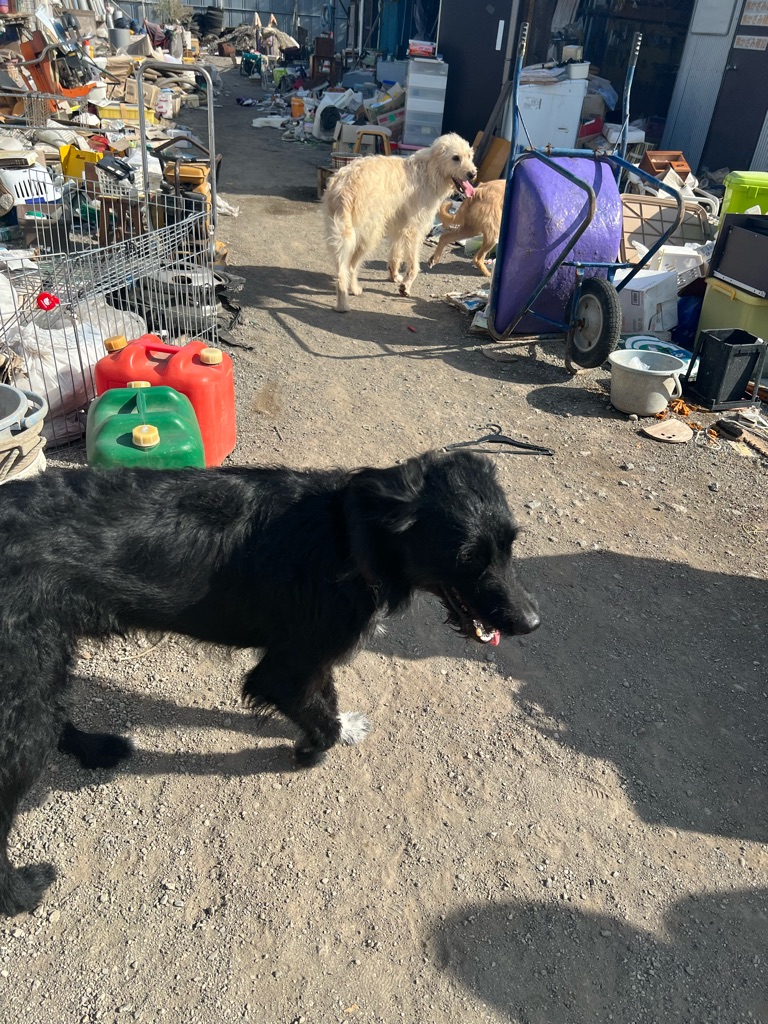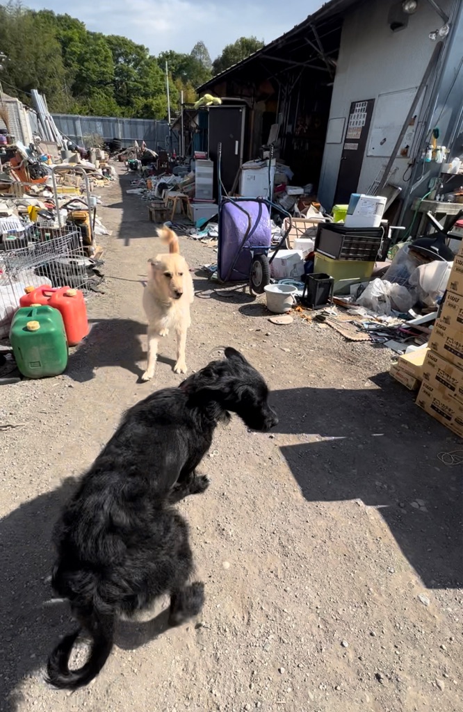 今日来た犬達は 潰れた建設会社の置き場に