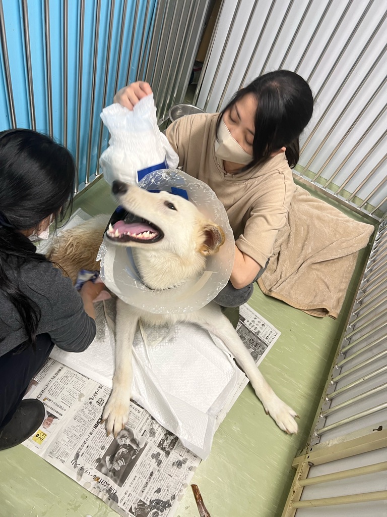 ムーニーちゃんが下痢をして夜中にシャンプーです😅