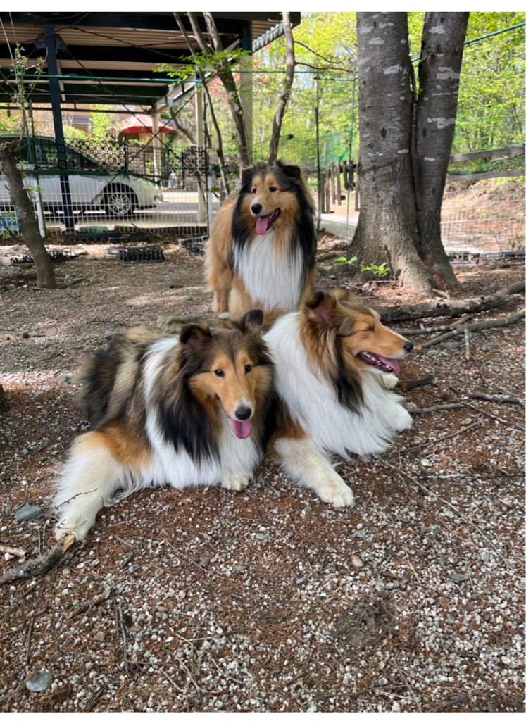 広いドックランで家族と一緒に遊ぶシェルティ達、幸せそうな姿に嬉しくなります。😆👌🌸
