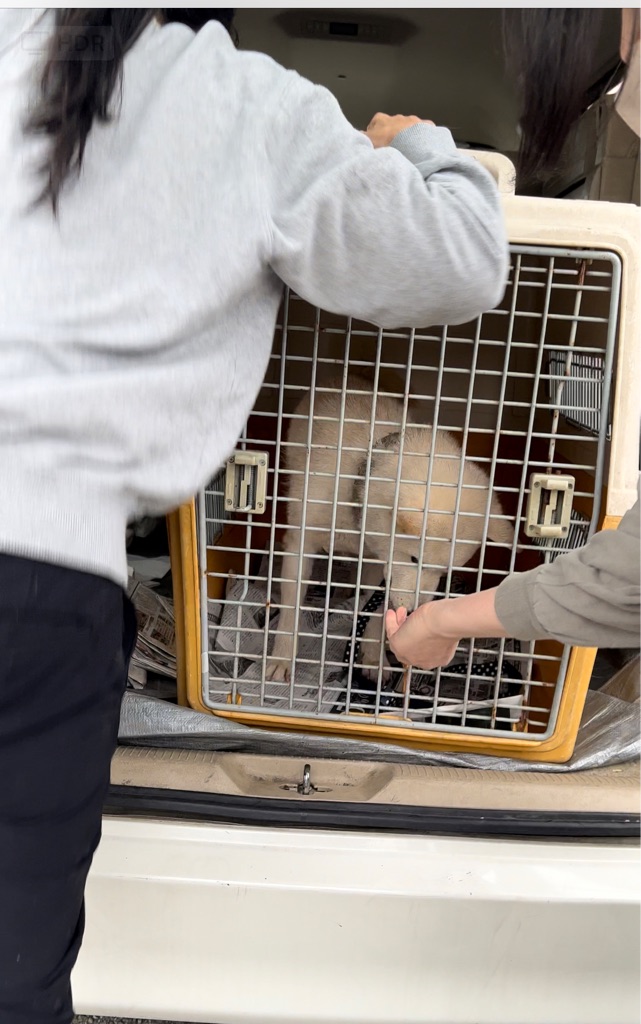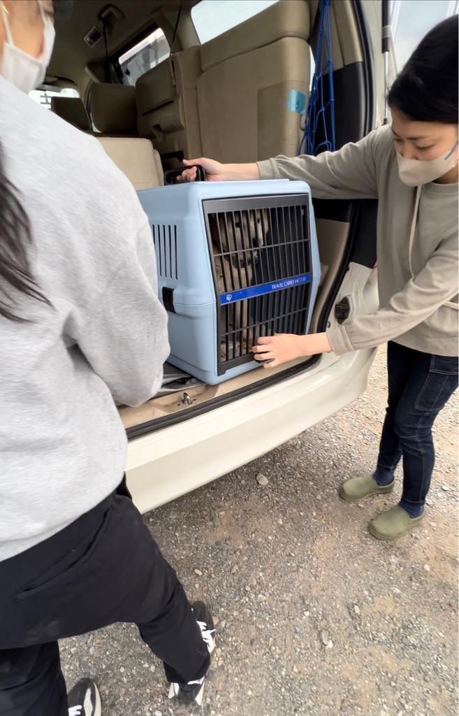落ち着いたので クレートに入れてシェルターに帰ります。