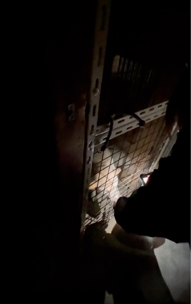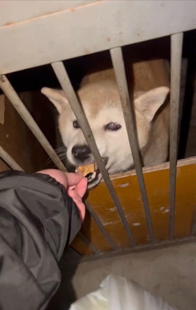 このプレハブの中は真っ暗闇で 犬達の姿も見えない状況です、