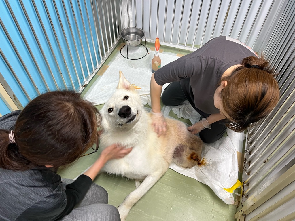 トリマーのお姉さんは 今日もレスキューの子を綺麗にしてくれました。