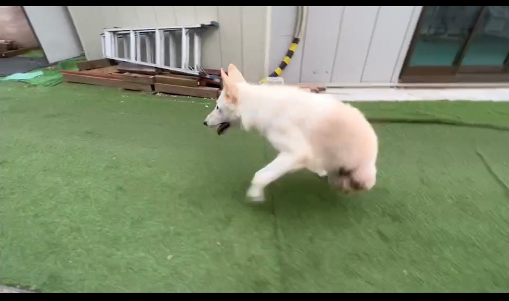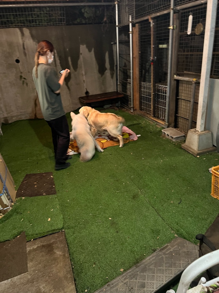 室内では、滑らない様に 毎日床にペットシーツを何枚も貼って貰っています、