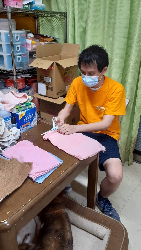雑巾のカット、お掃除、洗濯物干し、ブラッシングなど様々な体験をして頂きました。