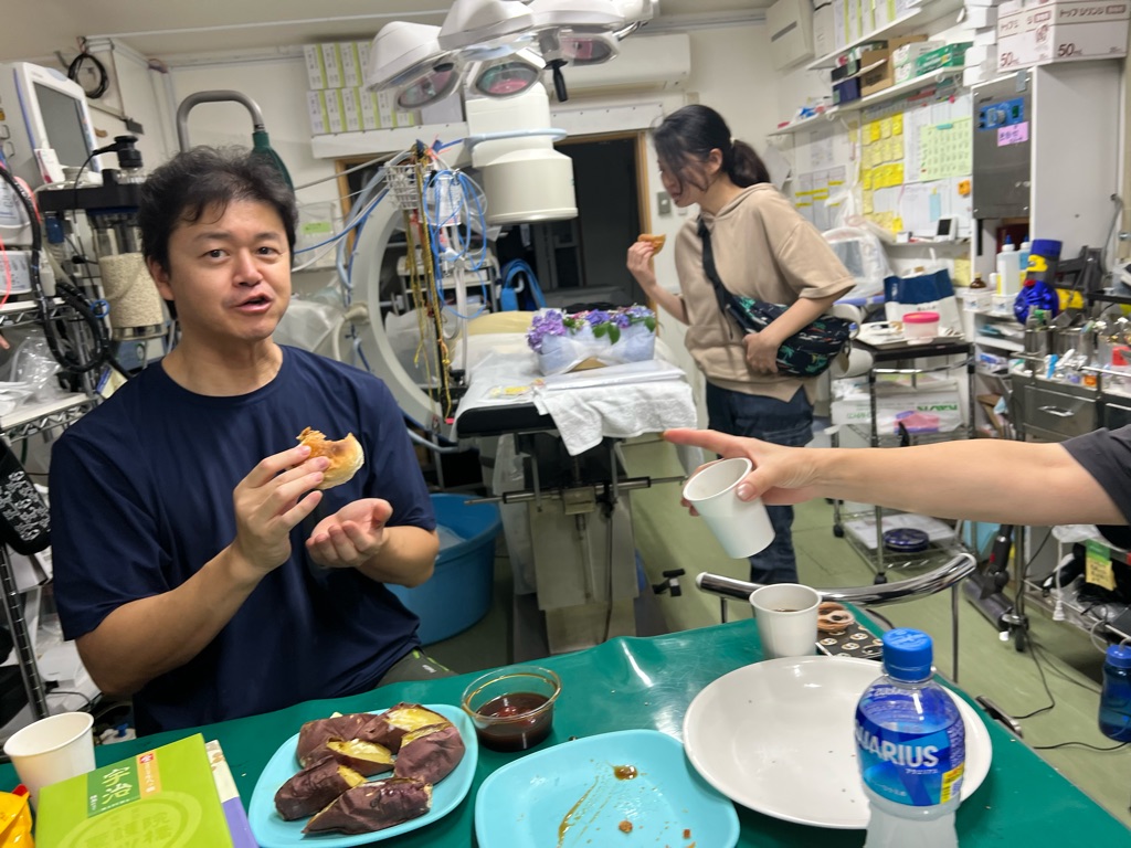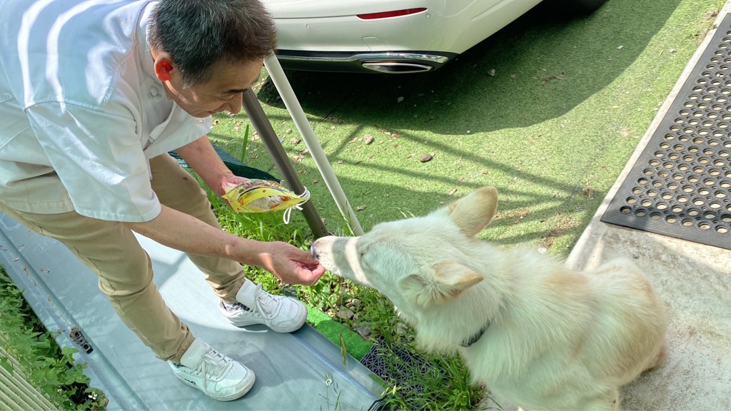 皆んなにオヤツを配ってくれるアリマンさん、