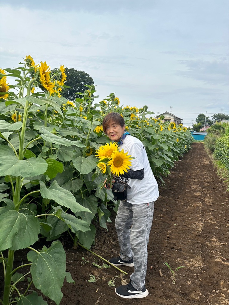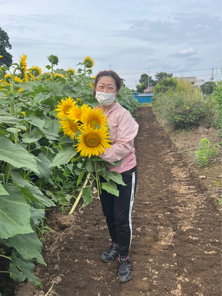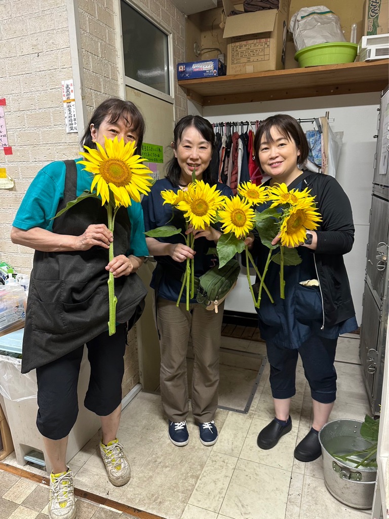 遠慮なくひまわりをもらうスタッフさん達🌻🌻🌻😅