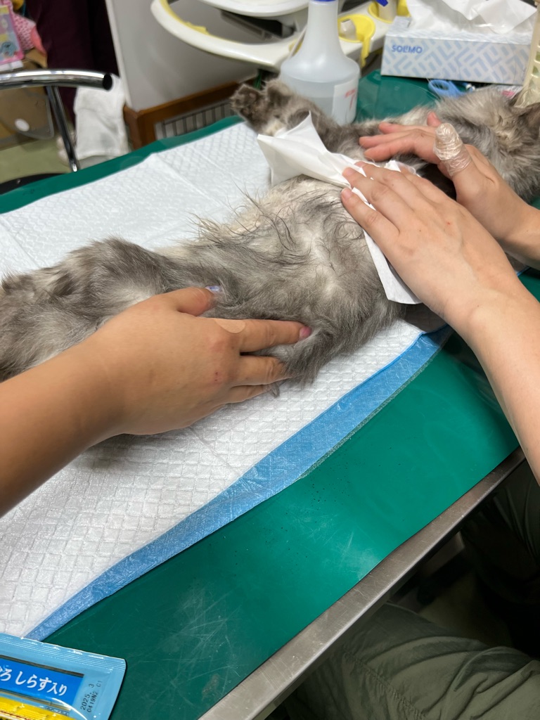 身体はガリガリで、極度の低血糖かも知れません、取り急ぎシェルターに戻り 先生に診て頂きました、