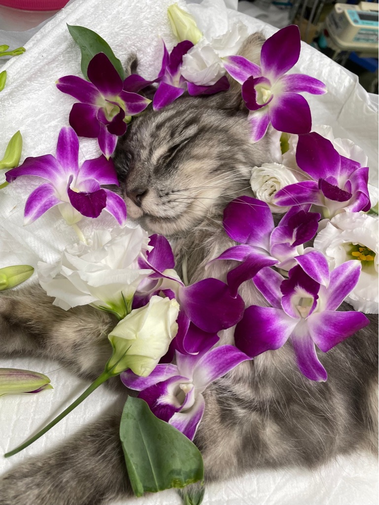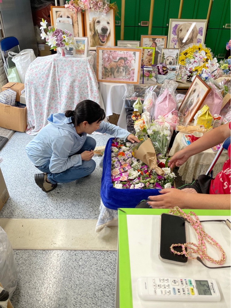 キングの為に沢山のスタッフさん達がお花を持ってお別れに来て下さいました。