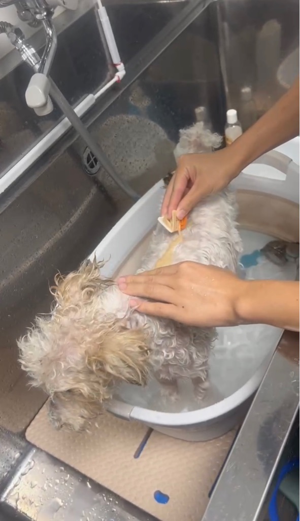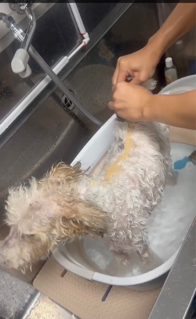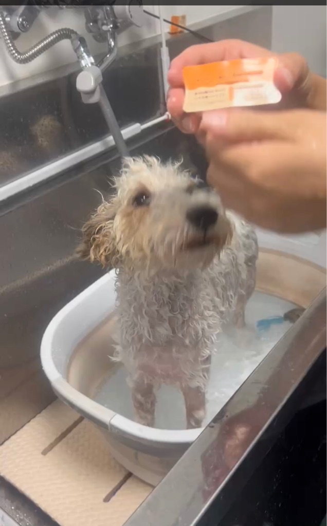 ラリマーもついでに洗ってもらいました、