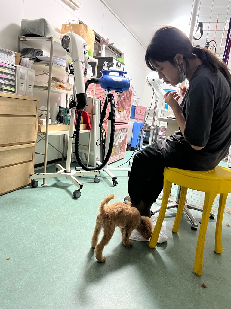 トリマーのお姉さんも 深夜までご飯も食べずに