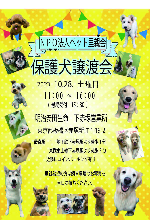 10月28日の板橋区下赤塚の譲渡会が開催されます。